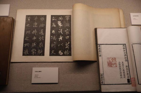 本次展览特别呈现了齐白石回忆自己学艺经历时提及的画谱、印集等珍贵古籍,如清末拓《爨龙颜碑》、清晚期拓《爨宝子碑》、民国钤印本《龙泓山人印谱》等。齐白石正是从这些艺术经典中汲取养分,融会贯通,师古而不泥古,最终形成了自身独特的艺术语言和风格。此外,展览还展出了多件报道和研究齐白石艺术的海外文献资料,进一步展现了他在国际艺术界的影响力,也是早期国际社会评论中国传统绘画的重要参考材料。