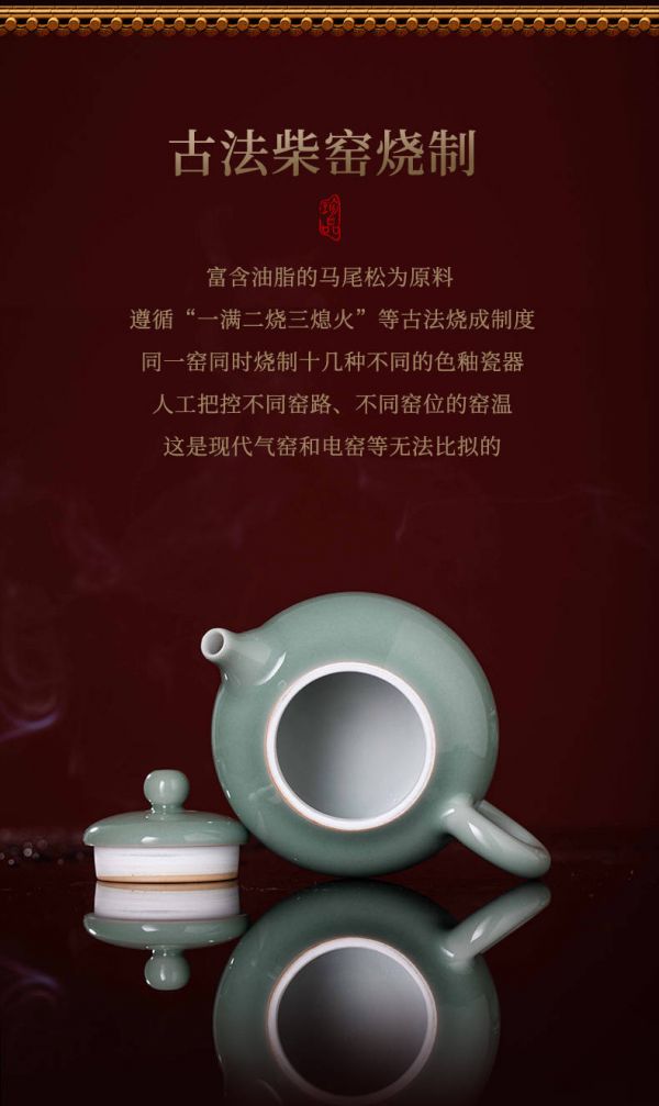 在快节奏的现代生活中,家海窑柴系列坚持使用古法柴窑进行烧制,这不仅是对传统技艺的尊重与传承,更是对现代人追求健康、自然生活方式的回应。景德镇原汁原味的古法柴窑烧制,采用富含油脂的马尾松作为燃料,其燃烧过程中产生的微小颗粒与气体,冥冥之中仿佛与釉料发生了化学反应,赋予了梅子青壶独特的质感与韵味。这种烧制方式,虽然耗时费力,但能够最大限度地保留陶瓷的原始味道,使得每一件作品都老味十足、却又清晰雅致、安全健康,适合各种日常使用。