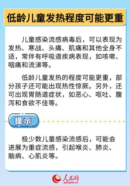 当前是儿童呼吸道感染性疾病的高发期,病原体仍以病毒和肺炎支原体为主,病毒主要以流感病毒为主。河南省儿童医院内科监护室副主任医师苏军、检验科主管检验师解海珍在接受人民网采访时介绍,儿童和成人感染流感病毒后,症状、治疗和并发症会有显著差异。以下内容,能帮助家长更好认识和正确应对流感。