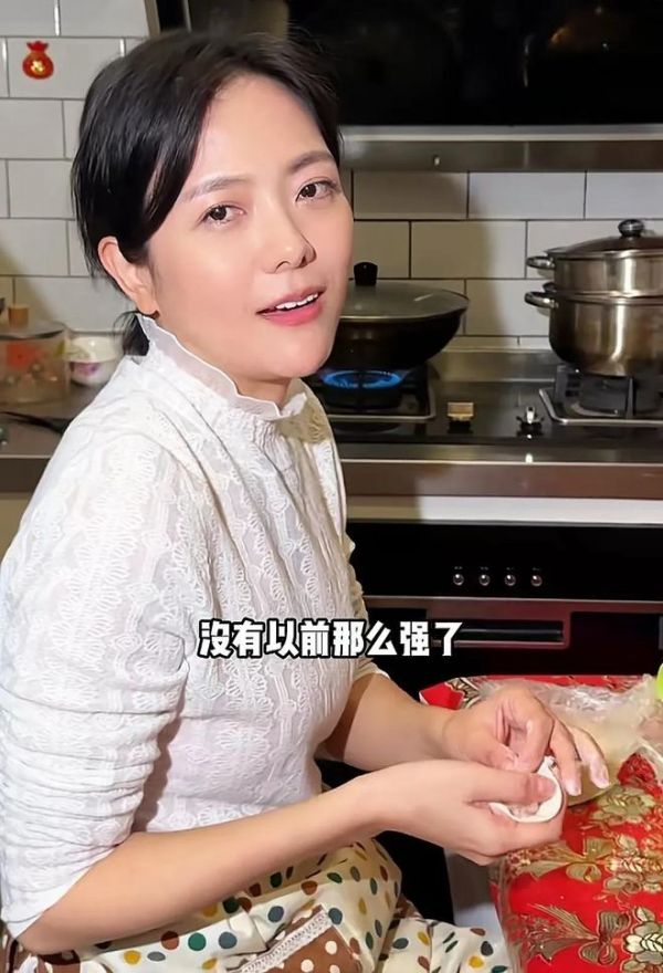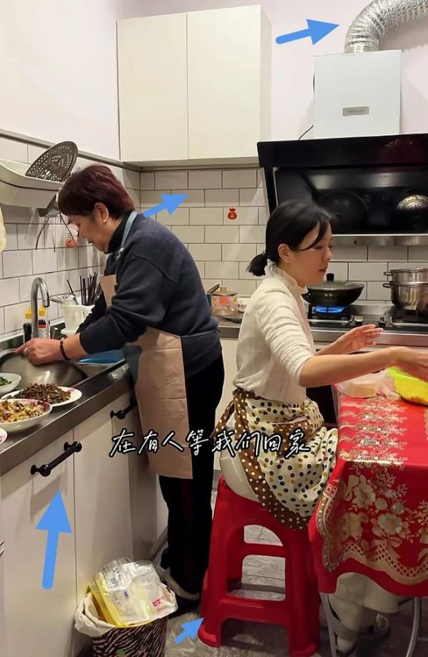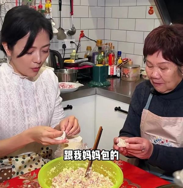 进入厨房后,她麻利地换上围裙,挽起头发包水饺、拌菜,一副贤惠主妇的模样。