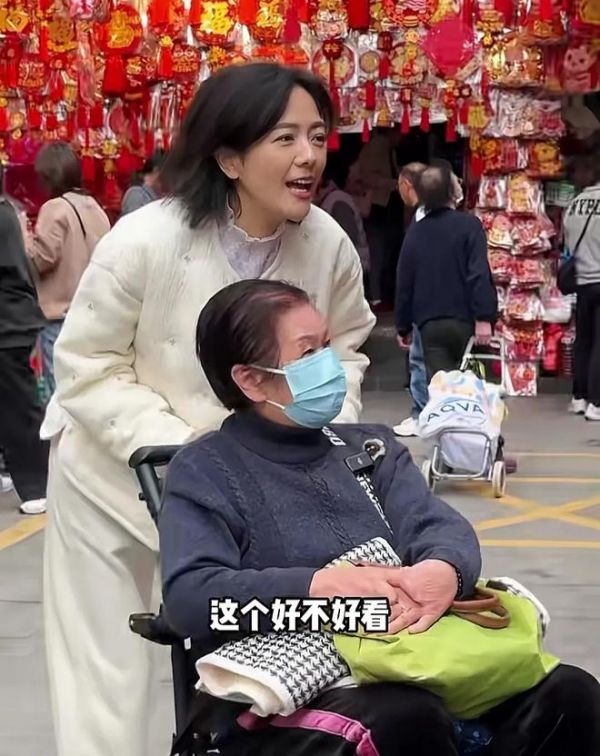 母女相聚的场景温馨自然。推着轮椅陪妈妈买年货,细心地将高处的物品拿到妈妈面前,杨乐乐举手投足间展现出浓浓孝心。