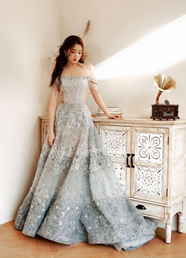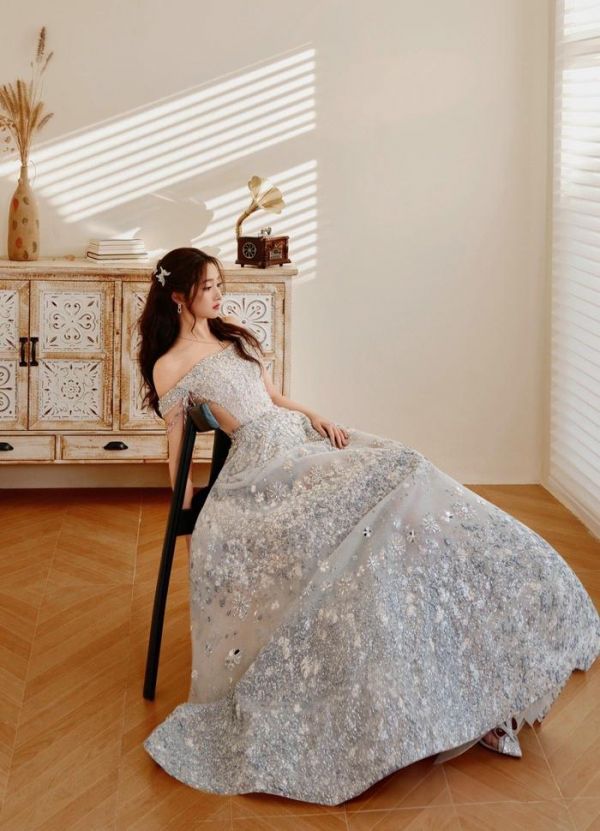 抹胸闪钻裙 下的她,如同夜空中最耀眼的星辰,光彩照人