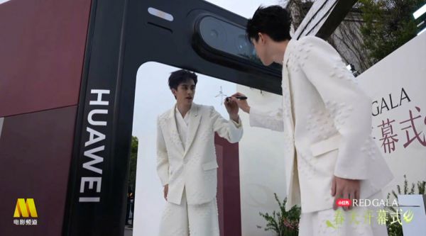 直播进行中,刘宇一身国风造型亮相春天开幕式红毯,英气十足,现场状态超好