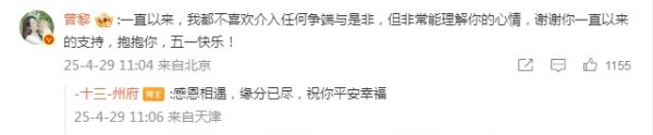 曾黎前粉丝否认曾黎方报警告粉!回复曾黎评论:缘分已尽