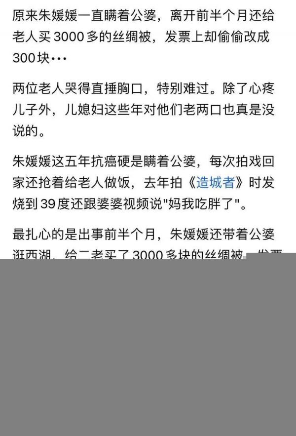 泪奔了!朱媛媛病世,公婆痛心不已,死前半个月还给公婆买蚕丝被