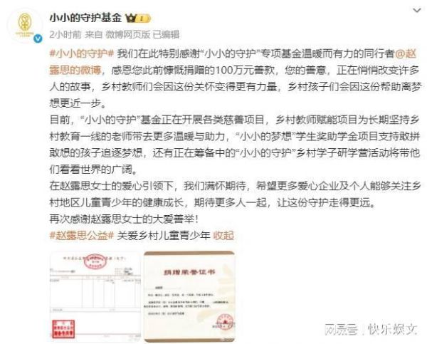 赵露思捐款100万元,人美心善获赞,网友:这小钱对明星不算什么