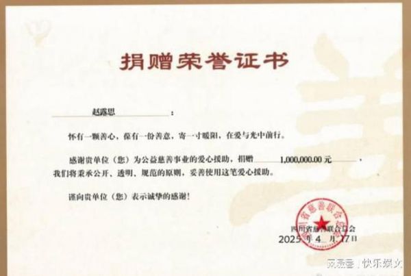 2025年5月28日,知名女星赵露思向某慈善机构捐款100万元的消息在社交媒体上广泛传播,引发了众多网友的热议和点赞。大家纷纷称赞赵露思不仅人美,心也善,用实际行动诠释了什么是真正的公益之心。