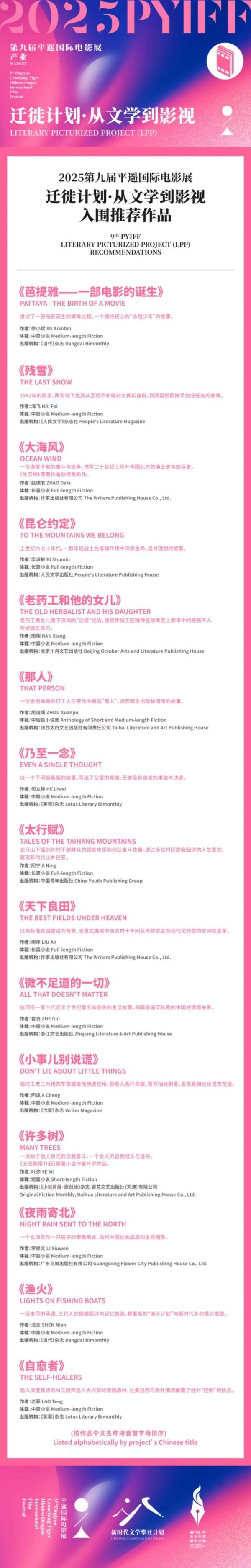 第八届平遥电影展公布“迁徙计划·从文学到影视”入围推荐作品