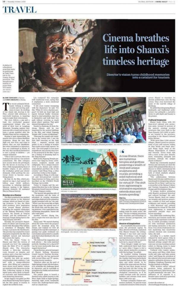 中央媒体关注山西|中国日报整版报道:电影为山西文化遗产注入新活力