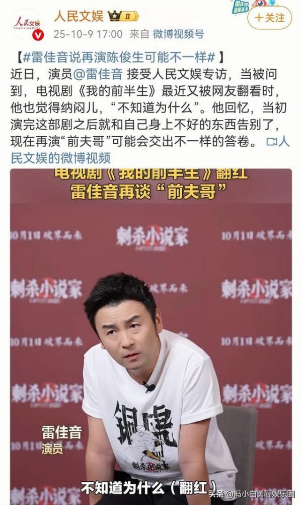 10月8日,雷佳音在接受人民文娱专访时,就“近两年有多部影视作品先后和观众见面,作品霸屏惹人烦”的问题作出了回应。