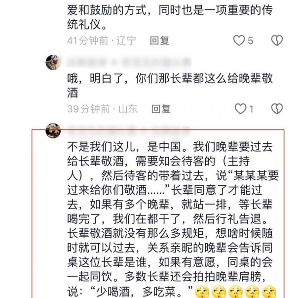 这样的争议完全是多余的。我们并不清楚当时的具体情况,仅凭一张照片就下定论是不负责任的。长辈给晚辈敬酒并非不可以,这种行为往往体现的是一种爱的鼓励。有经历过类似场合的网友表示,这其实是一种重要的传统礼仪,代表着长辈对晚辈的认可和期望。