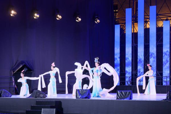 陕西省歌舞剧院歌舞团团长马艳丽介绍,这场户外演出聚焦陕西非物质文化遗产的当代转化,通过融合原创歌舞、民族器乐、精妙木偶技艺与高亢苍凉的陕北民歌,既呈现丝路长安的历史交响,亦展现黄土地的回响的民间生命力。