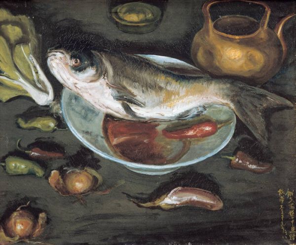 李铁夫 盘中鱼 1941年 油画 82cm×97cm 广东美术馆藏
