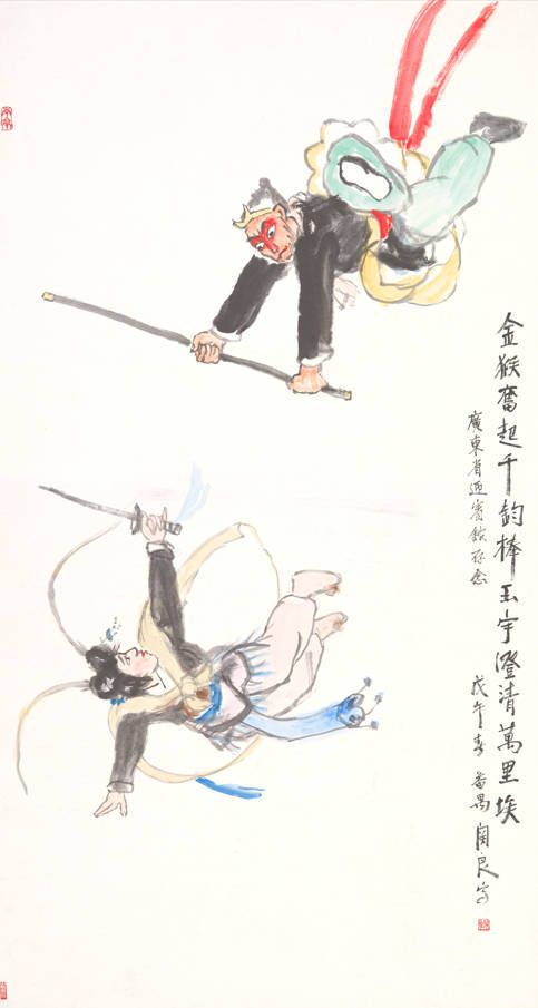关良 三打白骨精 1978年 中国画 179cm×96cm 广东美术馆藏