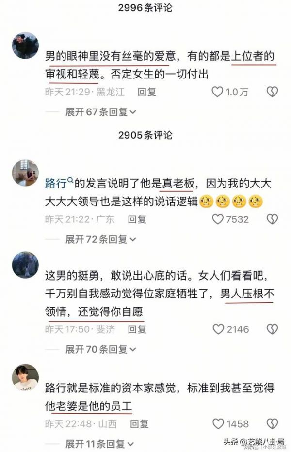 《再见爱人5》的镜头前,创联教育CEO路行一句“邓莎对家庭最大的付出是生儿子”,像一根刺扎进无数观众心里。这位手握上市公司、身家不菲的富商,轻描淡写间便否定了妻子十几年的婚姻付出,更用“演些丫鬟宫女”“女人什么都想要”的言论消解其职业价值,将婚姻里的性别偏见暴露无遗。