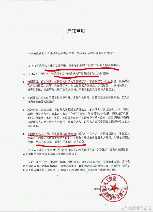 荣梓杉方称李禹熹长期蹲点艺人住所 导致艺人无法回家