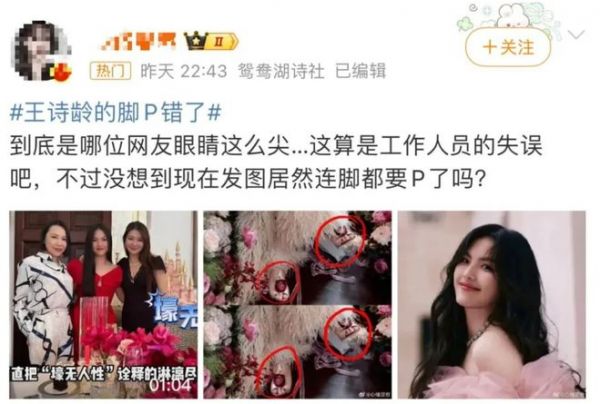 芭莎给王诗龄P了两只右脚,被网友发现了立马P了回来,太细节了吧