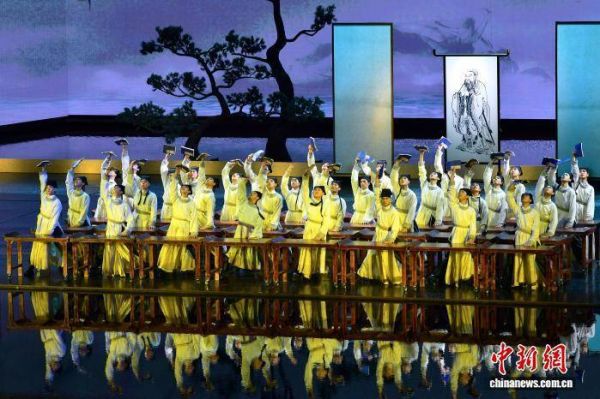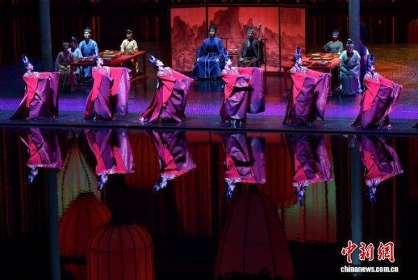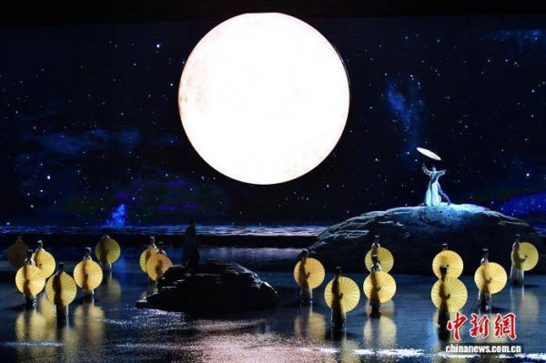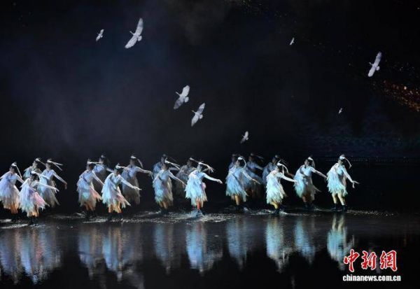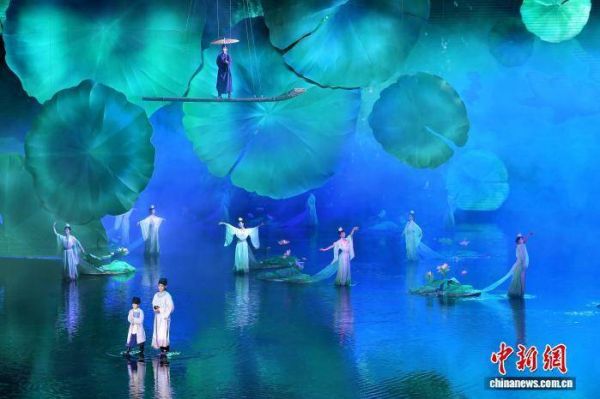10月18日晚,大型文旅舞台剧《月映武夷》演员在福建南平武夷山全球最大室内水幕舞台上演出。该剧融合音乐、舞蹈等表演形式,以朱熹成长故事为主线。通过数控舞台、AI全息投影转化为立体空间,舞台1秒内即可实现干湿切换,配合270°环形水舞台、超宽巨幕,展现八闽文化与武夷山水。自今年5月正式上演后,已成为当地文旅新名片和朱子文化新IP。中新社记者 张斌 摄