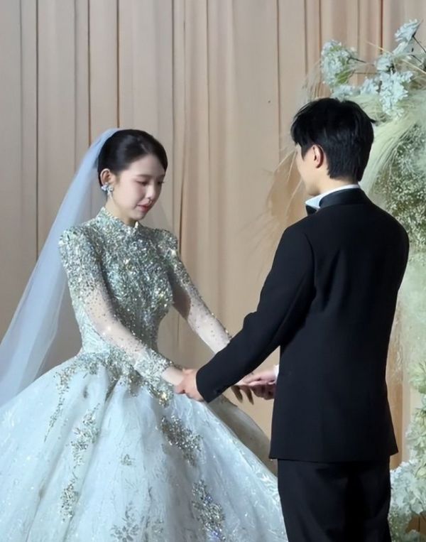 新郎金明龙的颜值成为另一个争议点。在中式礼服环节,他侧脸线条硬朗,高鼻梁搭配大眼睛,与新娘站在一起颜值相当,有网友调侃“侧脸撞脸演员张维伊”。但到了西式仪式环节,换上西装的金明龙显得胡子拉碴,肤色暗沉,看起来比23岁的章仟意苍老不少。更让网友意外的是,他与章仟意站在一起时身高几乎持平,要知道章仟意官方身高162厘米,这样的身高差让新郎“又矮又老”的评价在评论区刷屏。据知情人士透露,金明龙比章仟意大8岁,今年即将年满30岁,年龄差距和身材比例成为网友热议的焦点。