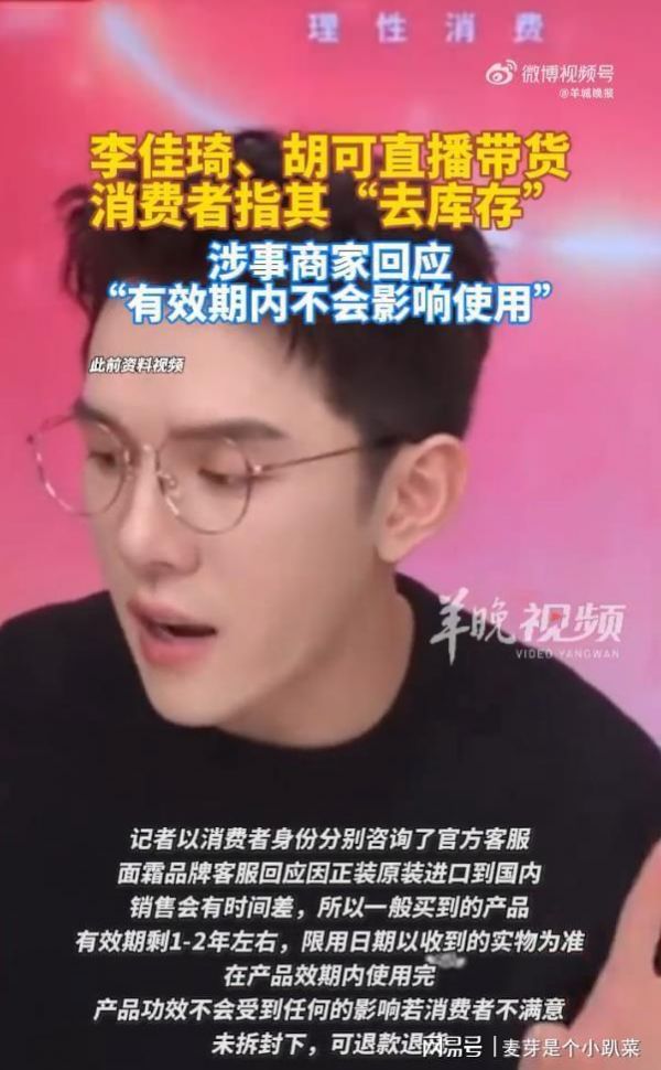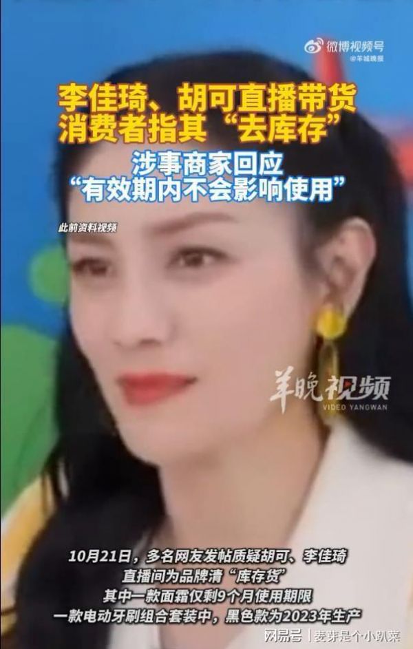 胡可李佳琦直播带货被指清库存,双方均未公开回应