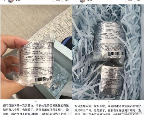 这波争议的核心,直指两款价格不菲的产品。在胡可直播间,有消费者豪掷2493元购入雅诗兰黛白金黑钻面霜套装,满心期待收货后却傻了眼:正装面霜的保质期竟只剩下9个月。按化妆品常规3年保质期计算,这瓶高端面霜几乎一脚踏入了“临期品”的门槛。