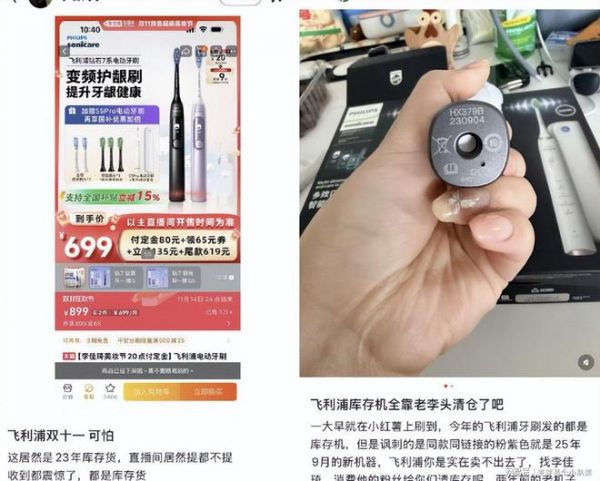 无独有偶,李佳琦直播间售出的飞利浦7系电动牙刷套装也未能幸免。消费者发现,套装中的黑色款生产日期赫然标注为2023年9月,这意味着产品在仓库里已静静躺了近两年之久,库存嫌疑巨大。更让消费者感到被区别对待的是,同链接下的粉色款却是2025年生产的“新鲜”货。这种“新旧混发”的操作,被广泛解读为典型的“清仓”手法。