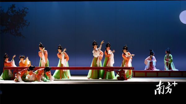 该剧在编舞设计与服装设计上,同样简洁、柔美而不失唐代女子生活的真实感。设计者从唐朝的《捣练图》获取创作灵感,演员身段、服装纹样与色彩,还有灯光的晕染,皆取法这幅唐画:捣练的“坠”、理线的“绕”、熨帛的“展”,被化入水袖、圆场与翻身等舞蹈动作中,举手投足间,盛唐内敛而雍容的气息扑面而来。
