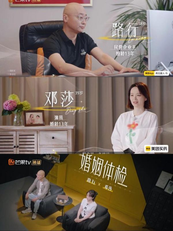 路行x邓莎,有钱霸总和女演员小娇妻的现实婚姻,也是播出后讨论度最高的一对,结婚13年后,当娇妻开始索要精神共鸣,这段“上嫁”婚姻要如何破局?现在观众看不到了,只有邓莎的成长线可看。