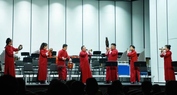 下半场,安徽、江苏、浙江三地乐团聚焦非遗传承与地域根脉。来自安徽的“徽之韵”组合带来吹打乐《欢乐曲》,质朴欢快的旋律,尽显 “徽风皖韵” 的独特魅力;江苏太仓的五洋丝竹乐团则用《灯会》再现江南古镇的华灯璀璨盛景;浙江浦江的清音民乐团演绎的浦江乱弹《花头台》,四个乐段分别以不同乐器为主角,将当地人豪爽奔放的个性展现得淋漓尽致。