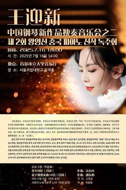 王迎新中国钢琴新作品音乐会之二在韩举办 奏响中韩音乐交流新乐章