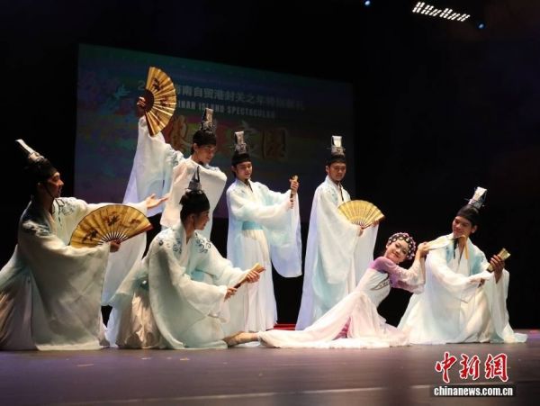 当地时间11月1日,由海口市艺术团打造的专场演出舞蹈诗《黎族家园》在澳大利亚悉尼歌剧院上演。中新社记者 薄雯雯 摄