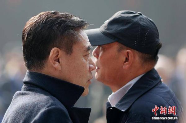 图为陈宝国(左)、张光北交谈。中新社记者 泱波 摄
