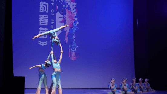 另一边,杂技亲子剧场内的《国杂蛮有味》同样吸睛。演出打破传统舞台界限,跳绳、斗笠、滚球、独轮等传统杂技道具焕发新生。