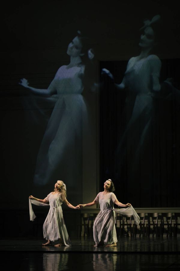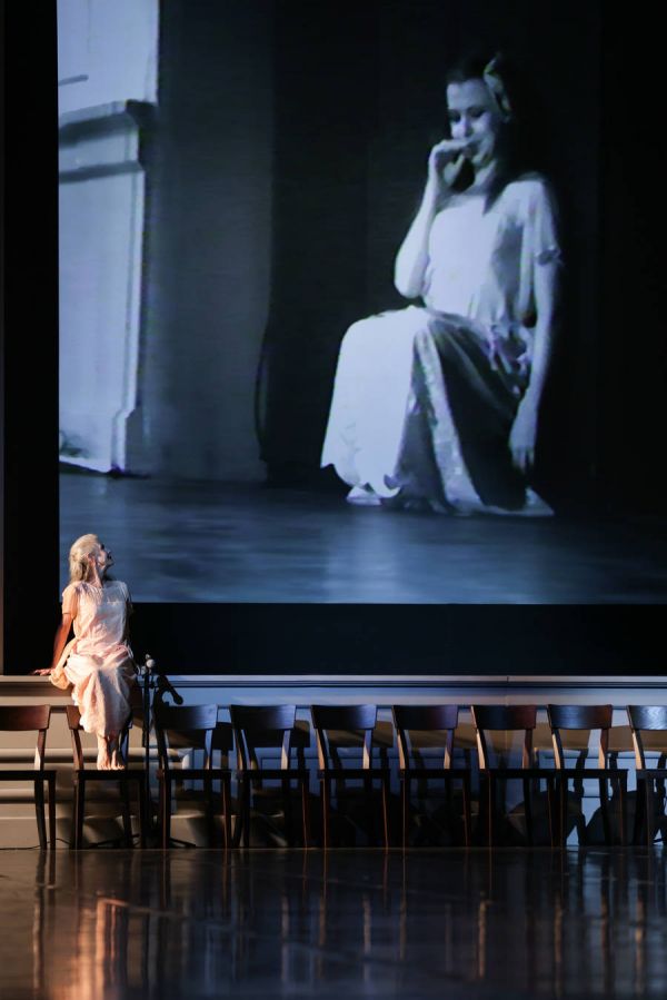 今年早些时候,意大利导演同样运用了这种手法。皮普·德尔邦诺在他的最新作品《觉醒》中,构建了一种横向的永恒对话,生者与逝者的交流,演员们与屏幕上已故导演的缪斯Bobo共舞。他坐在舞台上读信,自己写给自己的信,信里提及了Bobo,还有皮娜·鲍什。在他的世界里,时间不是线性的流逝,而成为一个可以自由穿越的场域,不再是与过去的自己对话,而是与永远定格在时光那头的灵魂交谈。这两部作品,如同彼此映照的镜子,共同构建了一座关于记忆,身体与永恒的时间神殿。