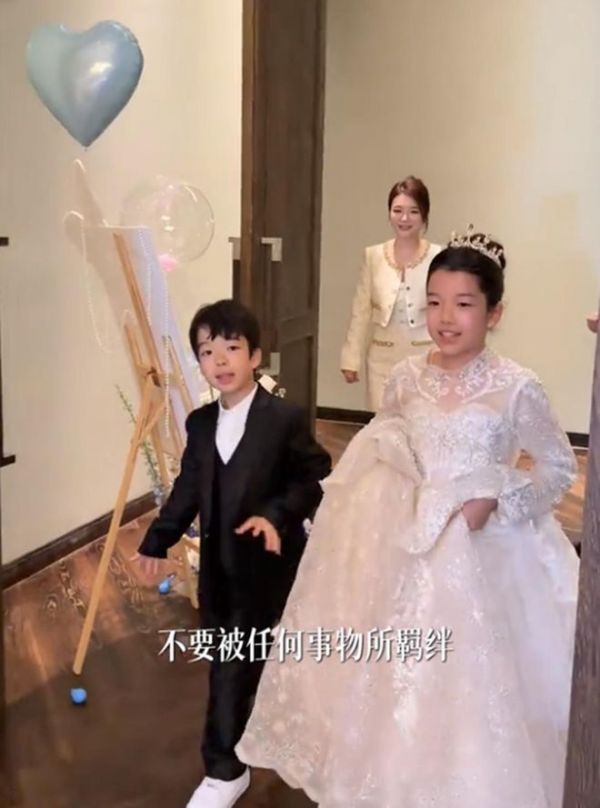 10岁对孩子而言是从儿童迈向少年的重要节点,吴雅婷为唯伊筹备了一场公主般的生日宴。视频中,她亲自为女儿化妆造型,耐心地为唯伊描眉涂唇,眼神专注又温柔。寿星唯伊身着洁白纱裙,头戴精致皇冠,化着淡妆的小脸精致可爱,活脱脱一个童话故事里的公主。一旁的弟弟“番薯”也被精心打扮,黑色小西装搭配白衬衫,领带打得有模有样,乖巧地跟在姐姐身后,姐弟俩站在一起宛如金童玉女。