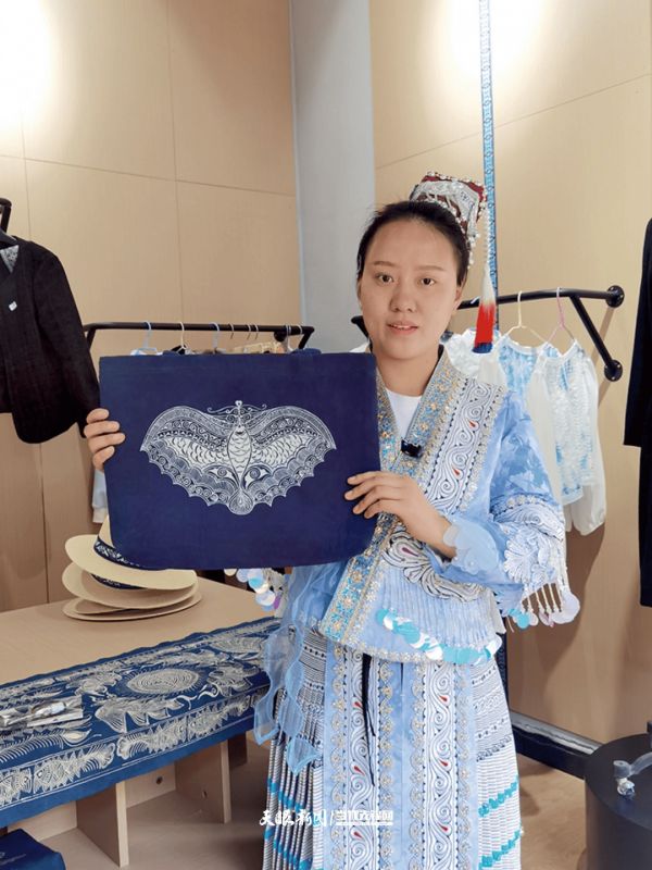 随着化屋旅游发展步伐加快,杨文丽的蜡染刺绣也得到了游客的青睐,产业越做越大。如今杨文丽的车间带动了22名绣娘就业,她设计的融入蜡染刺绣元素包包、挂件等,通过直播,卖到全国各地,最多的一场直播就销售了9万多元。