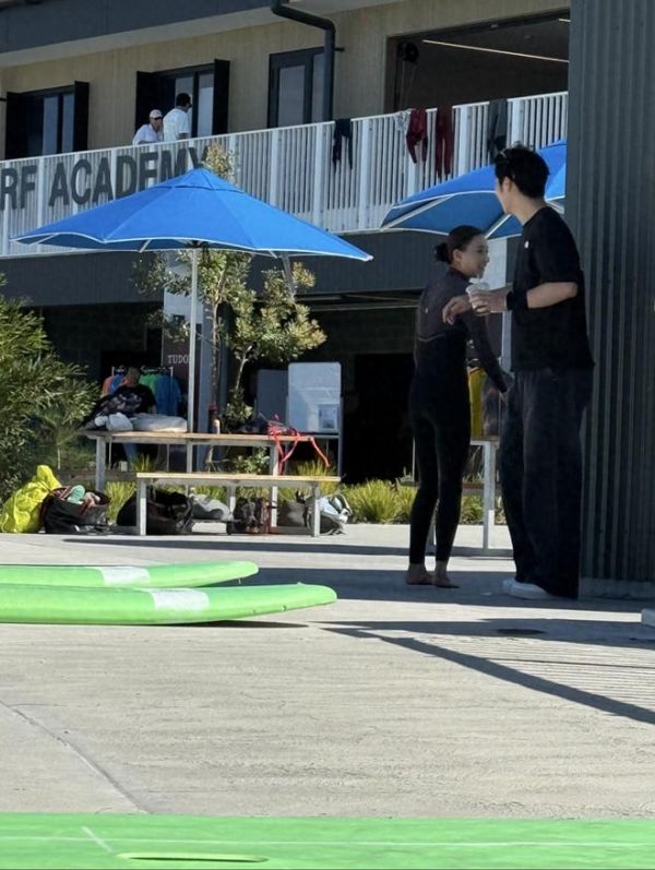 何超莲与窦骁在澳洲度假,同行还有相识的伙伴,私人行程不需要对外公开。两人被偶遇的时候是在度假村,何超莲当时身穿了黑色的连体泳装,周围还有很多滑板,看样子是要去滑浪,只见她打着赤脚,兴致勃勃的样子。而窦骁就站在她的身边,他一身黑色的装扮,手上还拿了一杯咖啡,他的装扮很休闲,不像是要下水的样子,夫妻俩在场甜蜜互动,何超莲一脸笑容。何超莲是在泳池中玩滑水,泳池有人工造浪,看起来很有趣,而没有下水的窦骁就在泳池边上观看妻子玩乐,他全程全神贯注地盯着。