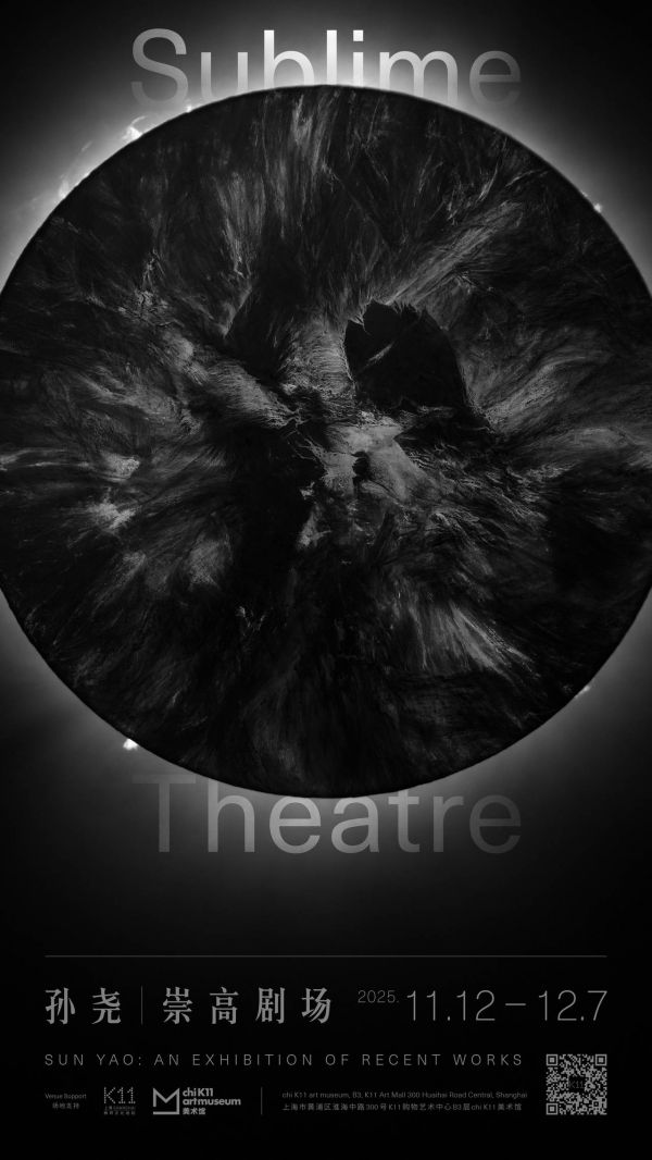 11月12日,孙尧个展《崇高剧场》(Sublime Theatre)在chi K11美术馆5号厅欣然向公众开放,展览将持续至12月7日。《崇高剧场》是一种冷静而剧烈的回应,让被遗却的“崇高”重新站立在我们眼前。孙尧的创作绝非自然的再现或抒情,而是对自然和人类自身意义的叩问与重建。他的作品不仅传达了能量的动态,更制造出强烈的精神逼迫感,从而令画面超越单纯的抒情,而表现个体内心的复杂运动。他以“风暴绘画”(Storm Paintings)撕开生活虚幻的表象,将观众抛入一种精神性的困惑与缺失中,并逼迫我们直面存在的深渊。在信息洪流割裂整体经验的今天,我们能否再度唤醒内心本真的震颤与超越。