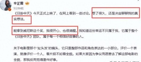 辛芷蕾发长文谈日掛中天 回应威尼斯影后“奖项运作”争议