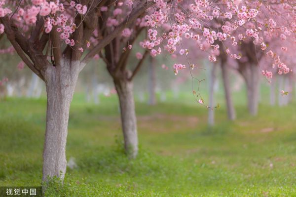江西赣州,金凤梅园的梅花渐次绽放,游客在园内赏花、游船。 本文图片:视觉中国