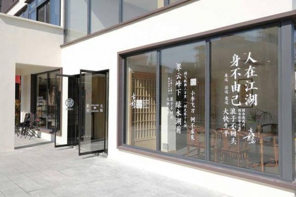 尽管研究中心刚落成,尚未添置全套陈设,但依然可以在其中找到杜皓冬口中“小江湖”的影子:多处落地窗玻璃上绘有古龙“人在江湖,身不由己”的书法字样。