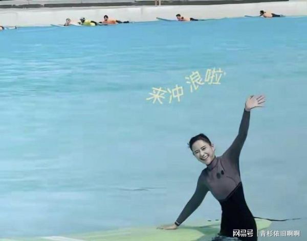 最逗的还是冲浪环节。酒店里有个人工冲浪池,何超莲换上连体泳衣就下水了。窦骁没下水,穿着黑衣服在岸上站着,表情看着有点紧张,眼睛就没离开过老婆。何超莲玩嗨了,冲浪板掉了耳朵进水,她歪着头在那倒水,完事儿还像个小孩似的朝窦骁挥手。整个状态特别放松,就是在自己地盘上撒欢的感觉。窦骁就那么在边上守着,还拿手机给她拍视频,视频里还能听到他的笑声。