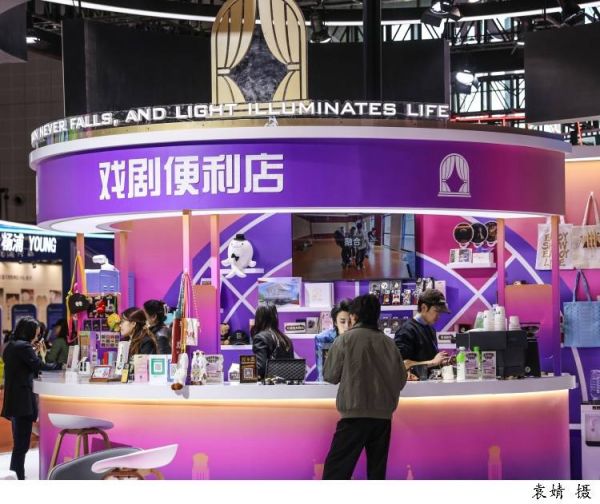 今年黄浦区展位上演了不少新玩法。仅这间“戏剧便利店”就将结合不同剧目内容,组织音乐剧《大理寺日志》、音乐剧《轮盘》剧组“一日店长”活动,进行特色演艺内容展示;通过展位里放置的演艺大世界票机,观众在文博会现场就能查询演出内容和购票。