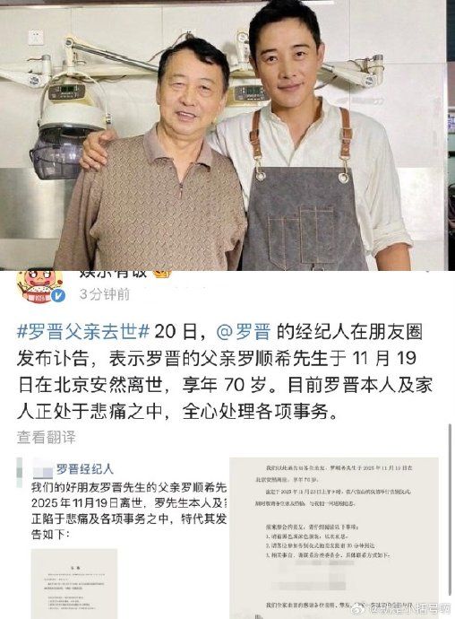 罗晋父亲讣告由经纪人代发