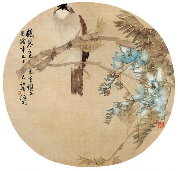 任伯年 《紫藤小鸟图》 纨扇 1881年