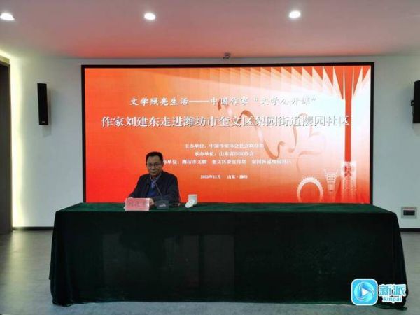 中国作家协会全委会委员、河北省作家协会主席、鲁迅文学奖获得者刘建东作为中国作协文学志愿服务团作家,走进奎文区梨园街道樱园社区,以“小说的发生和发展”为主题,从个人的创作经验到文学发展的普遍经验,详细讲述小说的灵感与来源、如何推动小说故事情节发展等内容,与潍坊的众多文学爱好者分享了他的创作历程、创作经验,并与大家进行文学交流。