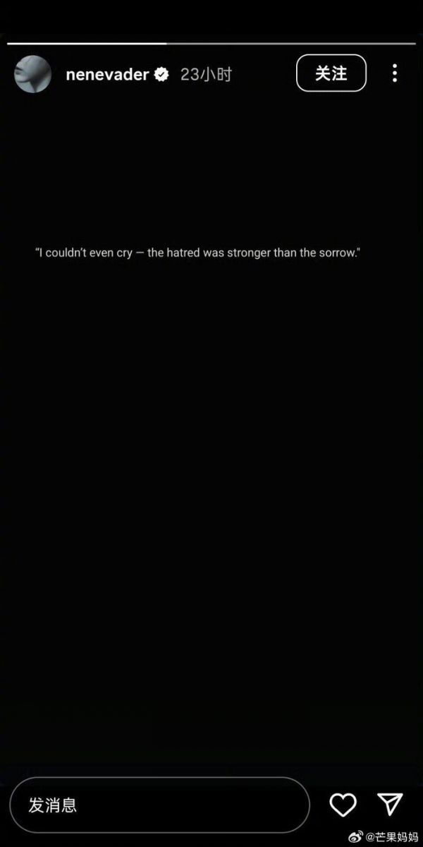 郑乃馨与男友Bright互相取关后,深夜更新快拍:“我甚至哭不出来——恨意远比悲伤更强烈。”“再见。”引用青春疼痛文学回应分手,上次还在演唱会抱着男友大哭