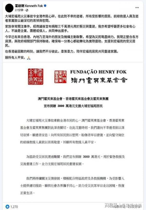郭晶晶也没想到!霍启刚会因香港火灾后的这一举动,实现口碑暴增