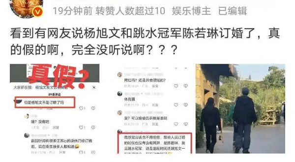 近日,网传演员杨旭文和跳水冠军陈若琳已订婚,引发热议。对此,杨旭文工作室在社交平台上发文回应称:“假。”