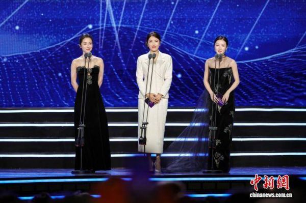 图为曾黎(中)、江一燕(左)、徐娇推介金椰奖官方入围纪录片。中新社记者 骆云飞 摄
